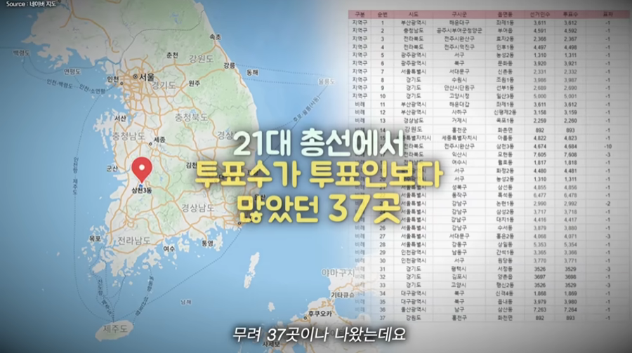 21대 총선 '투표수'가 '투표인'보다 많은 곳이 37군데나 있었음.