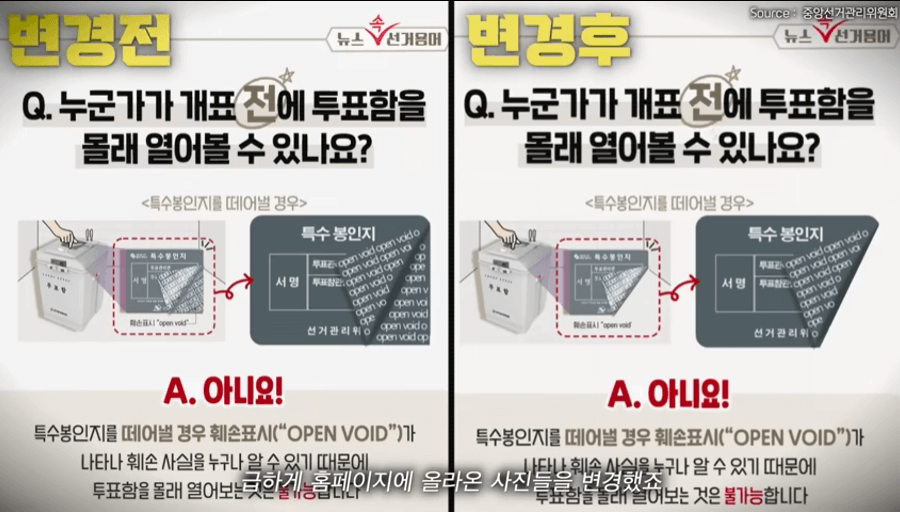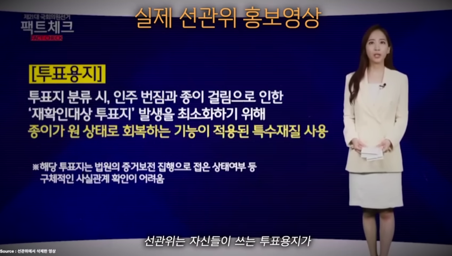 논란이 커지자 투표지가 특허를 받은 '형상기억종이'라고 발표함.