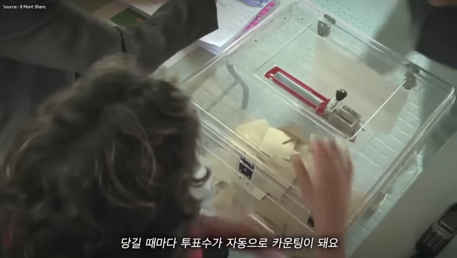 프랑스 투명 선거함- 선거 관리인이 레버를 당길때마다 카운팅이 된다고 함.