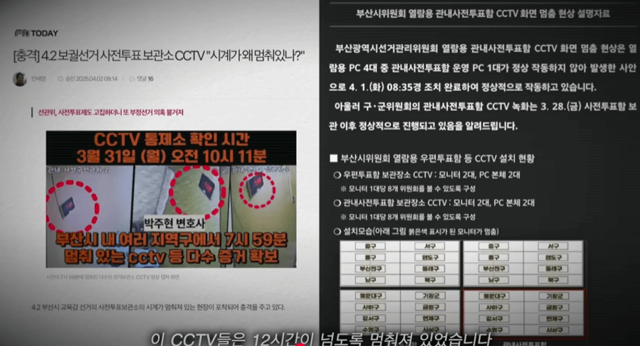 또한 부산 보궐선거에서는 CCTV가 12시간이나 멈춘 적도 있음.