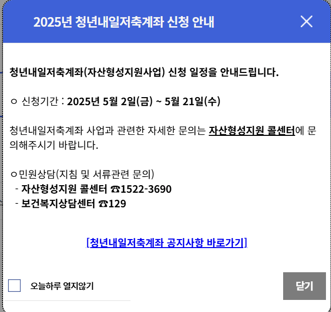 정부가 일하는 청년을 위한 자산 형성 지원 사업인 '청년내일저축계좌'를 2025년 5월 2일부터 21일까지 약 4만 명을 대상으로 신규 모집합니다. 최대 1,440만 원까지 모을 수 있는 이번 기회를 놓치지 마세요!