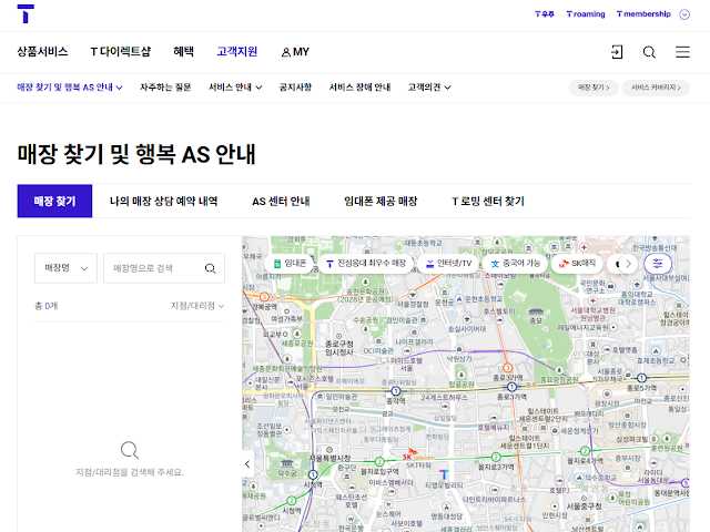 | 장소 | T월드 매장, 공항 로밍센터 |